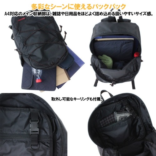 パッカブル仕様で旅先でのハイキングや街歩きなどに便利な撥水バックパックです。