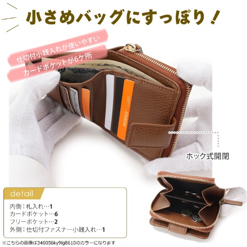 特徴 | ・スキミング防止機能付き ・タッチ式決済対応 | ・カードは最大10枚まで収納可能 ・紙幣は50枚まで収納可 | ・14gの軽量設計 ・外側にコインケースあり | ・L字ファスナー ・ベジタブルタンニング協会の証明書付 | ・二つ折りスタイル ・札入れは2層 |