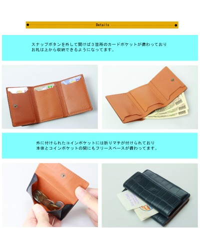 評価:小さい財布は小銭がどう収まるかが問題だったのですが、大き目のコインケースが付いているので、自販機の前でもさっと支払いができます。