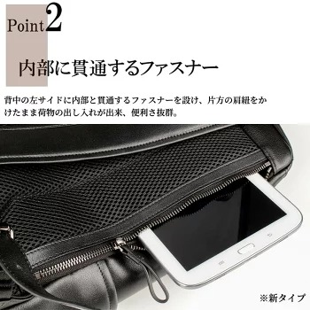 特徴 | ・直通のファスナー ・オンオフ使える | ・風合いがあるレザー ・2WAY | ・シンプルで機能的 ・男女兼用 | ・ライダースジャケットをデザイン ・軽めのレザー使用 | ・A4サイズが余裕 ・背面がクッション設計 | ・楽なショルダー ・収納力抜群 | ・A4サイズが余裕 ・セミオートマチックスライダー | ・傷や汚れに強い ・雨のときでも安心 | ・15インチPC収納可能 ・多彩な収納 | ・3WAYタイプ ・B4サイズが余裕 |