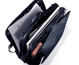 メイン収納は両側ファスナーで大きく開き、ファスナーポケットとノートパソコン用コンパートメントがあり、ノマドワーカーにぴったりです。