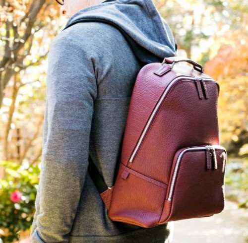 艶があって柔らかそうな見た目のレッドドリームのメンズレザーリュック。