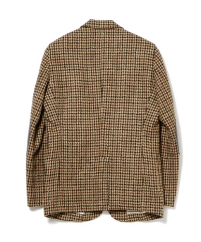 4色のツイード生地を使用しているジャケットは、襟がノッチドラペル、2ボタンのオーソドックスなデザインです。