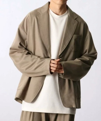 こちらのテーラードジャケットも、きっちりしながらゆとりがあるダブル。