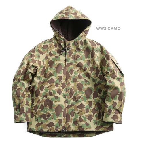 アウトドア感が全体から伝わってくる迷彩柄のマウンテンパーカーです。