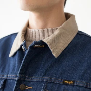こちらのデニムジャケットは襟にコーデュロイ、裏地にはブランケットを使用しているため、冬におすすめです。