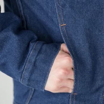 ポリウレタンが混合されているデニムジャケットは、ストレッチ性があるため購入当初から動きやすいのが特徴です。