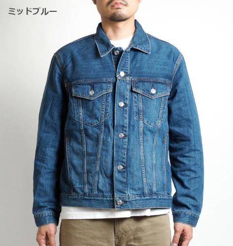 デニムジャケットの定番色はネイビーです。少し濃い目のインディゴもおすすめです。