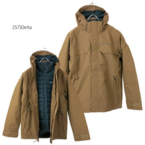 ウール素材のような厚手のスーツを着る場合は、インナーをマウンテンパーカーにするのもありです。