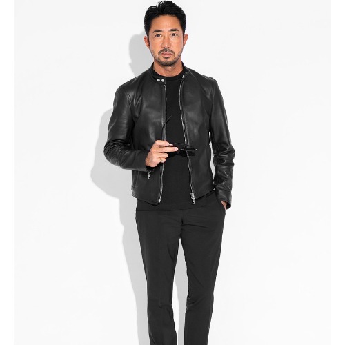 ダブルライダースは、無骨な男らしさを与え、ライダースジャケットの定番デザインです。