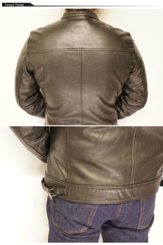 一見シンプルに見えるシングルライダースですが、襟のDカンベルトの仕様や肩の切り替え、前後の肩から腰元に走るカットラインなど、こだわりあるデザインが織り込まれています。