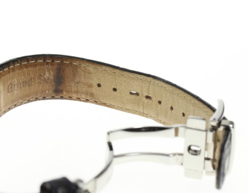 クロコダイルレザーがワイルドな印象になりますが、文字盤部分が雪をイメージさせた雪色カラーとなっており、落ち着きのあるデザインになります。