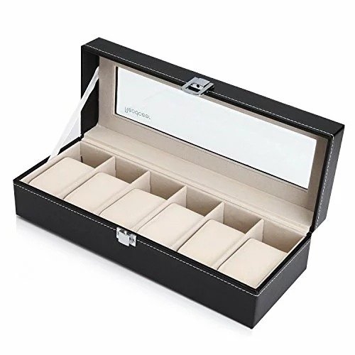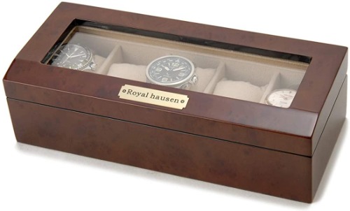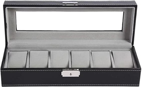 高コスパで購入できる腕時計ケースです。6本の腕時計が収納でき長方形のスリムサイズで置き場所を取りません。