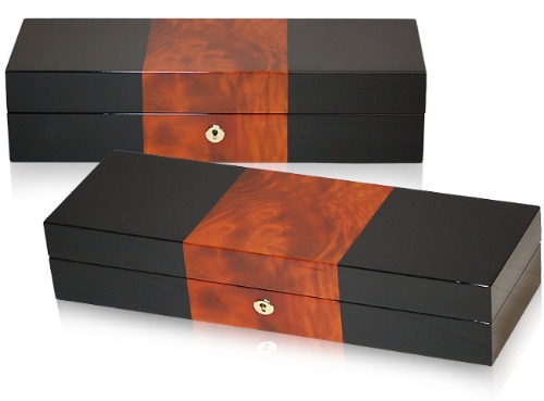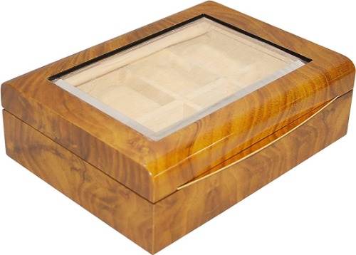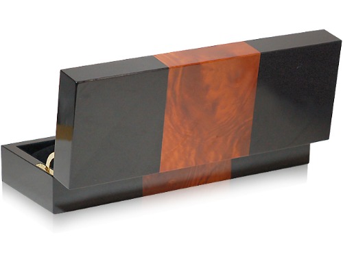 評価:箱の表面はピアノ塗装のような平坦光沢面で上品です。内部の仕切りの作りの精度や蝶番の背面や底面も、丁寧さを感じる作りになっていて大変満足しています。