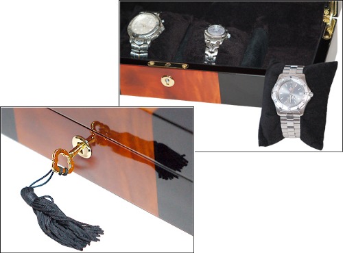 細部まで工夫を凝らして作られた木製のウォッチボックスです。