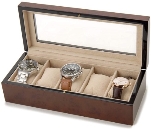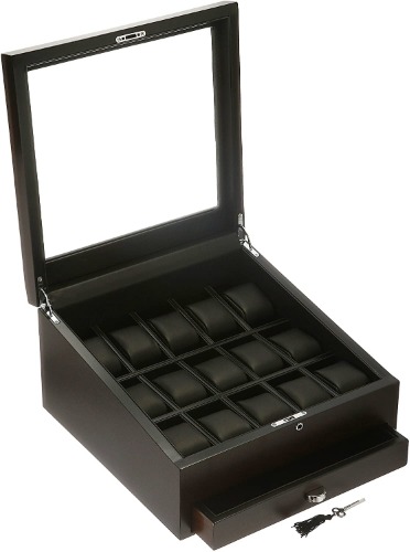マットに仕上げた腕時計ケースは15本の腕時計を収納でき、すっきりまとめられるでしょう。