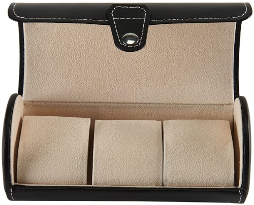 腕時計を3本収納できるケースです。どの向きでも置くことができるチューブデザインで、スーツケースの中にも気軽に入れられます。