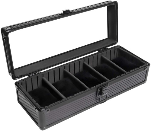 5本の腕時計を収納できるアルミケースです。耐久性があるので気軽にバッグに収納しながらあちこち持ち運ぶことができます。