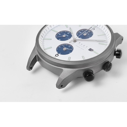 また、耐腐食性が強い素材で作られているので故障の原因が起きにくく、特にknotのクロノグラフはスーツと相性抜群です。