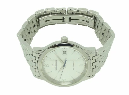 ジャガールクルトのマスターコントロールデイトは3針デザインですが、ホワイトとシルバーを基調にしたデザインで、高級感がある雰囲気が多くの人に好評です。