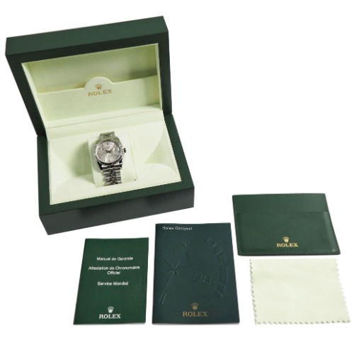 ジュビリーブレスを使用している「ロレックス Ref.126300」は、全体的にシンプルな色合いで幅広いシーンで身につけることができるロレックスの腕時計です。