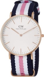 ダニエルウェリントンのレディースに人気がある腕時計ランキング10位の「CLASSIC SOUTHAMPTON DW00100034」は、白・ピンク・ブルーのベルトがおしゃれなモデルです。