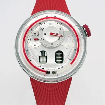名前の「EAU ROUGE」は「赤い水」という意味があり、名前の通り針と液体、ベルトを赤に揃えたインパクトのある腕時計で世界限定8本発売されました。