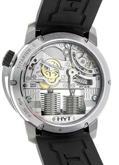 HYTとは Hydro Mechanical Horologist(ハイドロ・メカニカル・オロロジスト)の頭文字を取ったブランド名の時計です。HYTは液体を用いて機械式時計で時刻を表示するという、最先端技術の詰まった高級時計なのです。