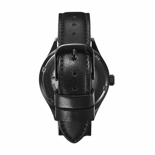 裏側は腕時計が動く様子が見えるシースルーバックで、機械式時計が好きな人の心をくすぐります。