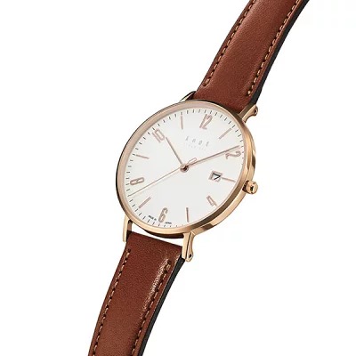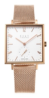 KnotのCD40RGWHは、白の文字盤とゴールドのケースで肌なじみが良いので女性でも着用しやすいデザインの腕時計です。