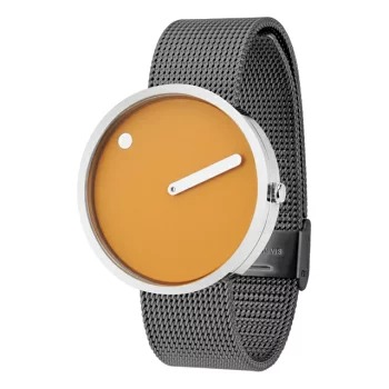 オレンジのダイヤルがアクセントとなっているPICTOの腕時計はユニセックスデザインで、男性女性問わず似合いやすい腕時計です。