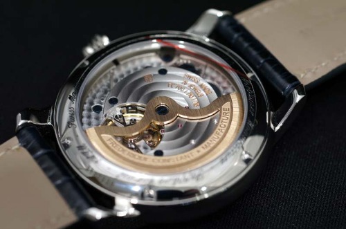 さらにケースバックからは精巧な機械部分を覗くことができ、美しいペルラージュを干渉することができます
