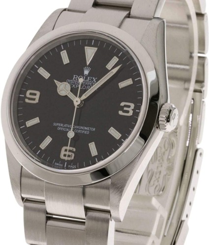 ロレックス「エクスプローラーI Ref.114270」は、視認性がよく100M防水性機能も搭載されていて多機能なので実用性があると評判です。
