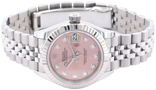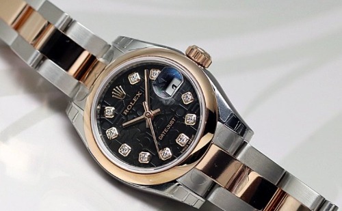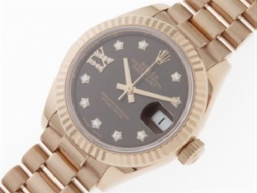 すっきりとしたベゼルとベルト部分にピンクゴールドを使用しているので、肌馴染みがとても良く、ダイヤが10個入っている華やかな腕時計で、ロレックスの中でも女性に根強い人気があります。