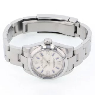 176200はロレックスが防水防塵性能を高めるために開発されたケース「オイスタケース」と「永久」の意味を持つ、360度回転式ローターの自動巻き機構「パーペチュアル」が搭載された女性用腕時計です。