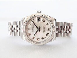 デイトジャストのケース31mmは文字盤の種類が多く、ダイヤが入っている物、シェルの物、ローマ数字の物など様々です。