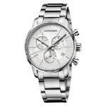カルバンクラインを代表するシリーズであるシティのクロノグラフで、すっきりとした見た目で抵抗感なく身に着けられ、プライベートでもビジネスでも使用できるタイプの時計です。