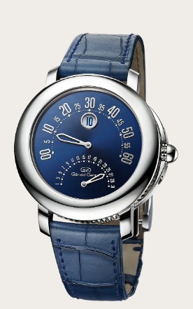深いブルーの文字盤には、オリジナルのジェラルド・ジェンタのロゴが。