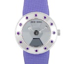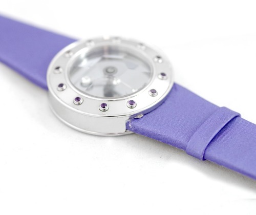 夏はルビー、冬はブルーサファイアといったように、四季を象徴するカラーの宝石をダイヤル中心に配置し、針の先端にはスライスしたダイヤモンドをセット。