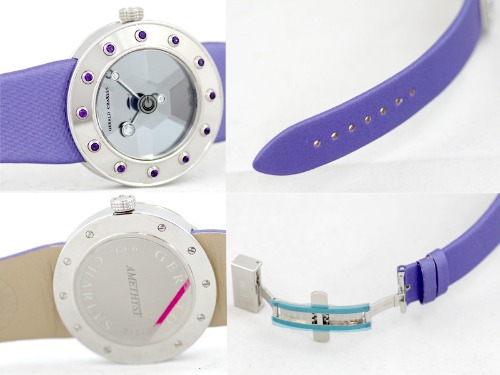 評価:四季にあわせた宝石が腕時計を彩るフォーシーズンズの名で有名な、ジェラルド チャールズのデザインがとても魅力的で手に取らずに入られませんでした。ミラーダイヤルの美しさに見とれてしまいます。大事に使いたいと思います。
