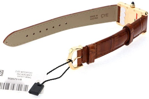 「タンク ルイ カルティエ」は18Kイエローゴールドにレザーベルトを使用しているモデルです。