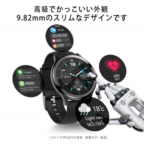 androidユーザーにおすすめの通話可能なモデル、SEICH スマートウォッチ2019はデザイン性が高い事で評判です。