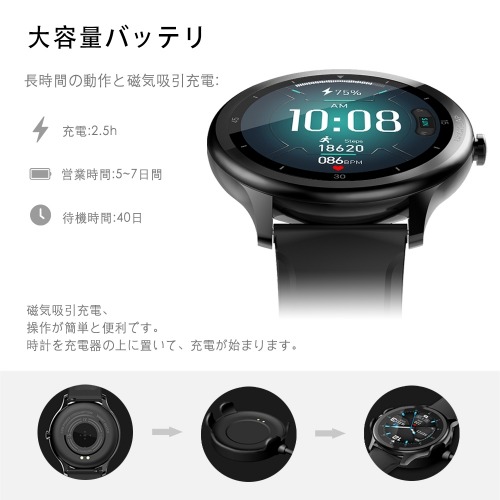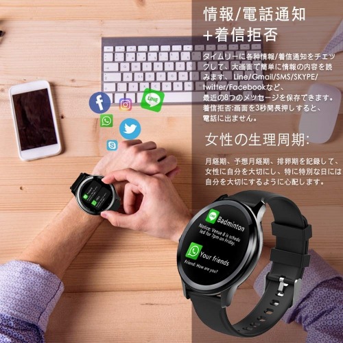 大きめの液晶でタッチ操作がしやすい、Viovy スマートウォッチは多彩な機能が装備され、大きめの画面はタッチ操作もしやすく、メール等の着信が見やすいでしょう。
