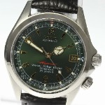 評価:文字盤の緑は織部色で落ち着いた色合い。日付部分も緑色の背景に白の数字。簡易方位計はまず日常で使う事はないだろうが、これがなければ買おうとは思わなかったくらいにこの時計にとっての個性の部分。