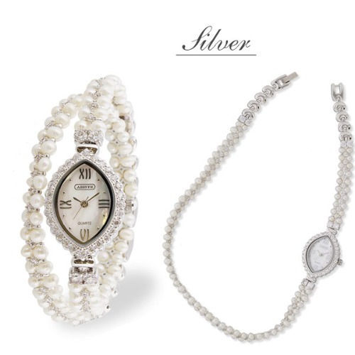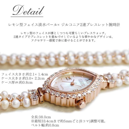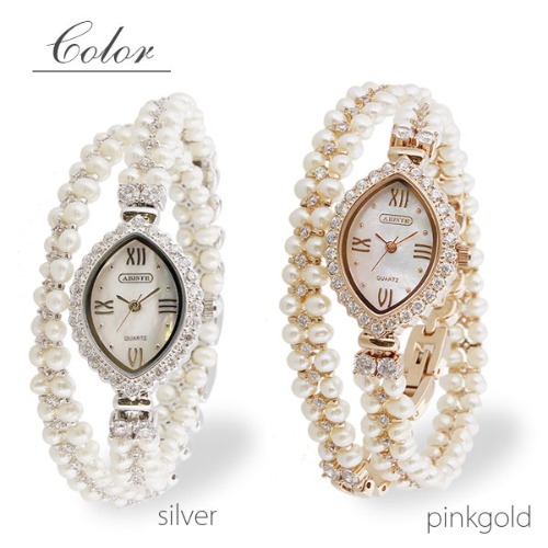 アビステの商品番号9170008は、淡水パールとジルコニアを使用した可愛い形の文字盤が特徴です。