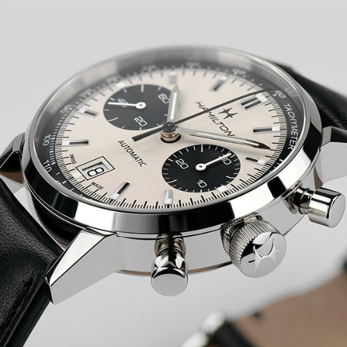 ハミルトンファンには有名なパンダダイヤルに、自社オリジナルの自動巻きムーブメント H-31を搭載しています。