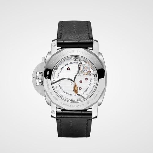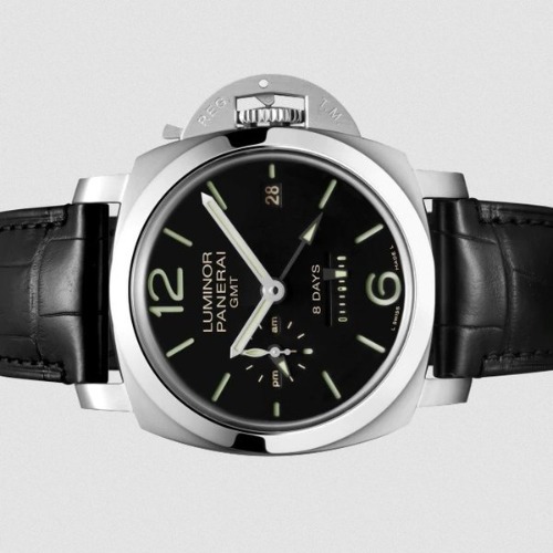 パネライのお家芸とも言える夜光塗料の技術をふんだんに取り入れ、二重構造の文字盤という珍しい工法で製作されたのがルミノール 8デイズ GMTです。