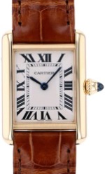 「タンク ルイ カルティエ」は18Kイエローゴールドにレザーベルトを使用しているモデルです。