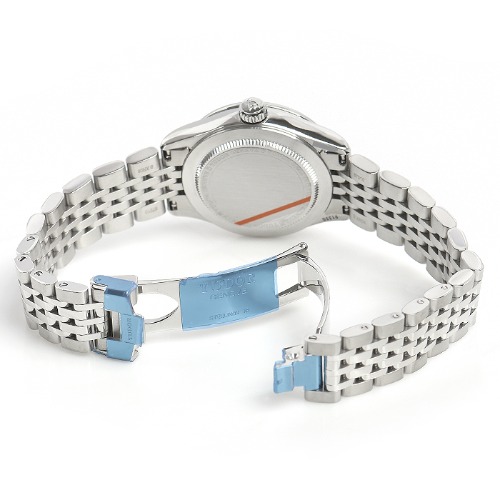 超小型・薄型のケースが腕につけても主張しすぎず、レディース時計とファッションとの一体感も優れています。