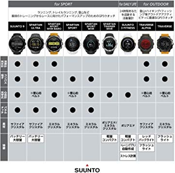 Traverse AlphaとSUUNTOの主な人気モデルを一覧表にまとめました。